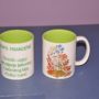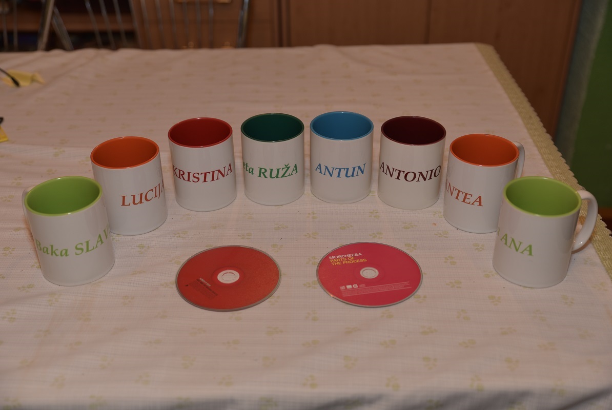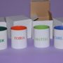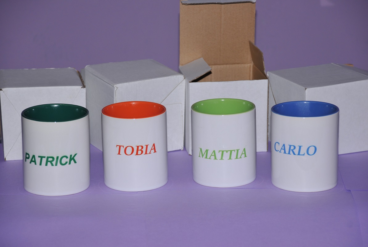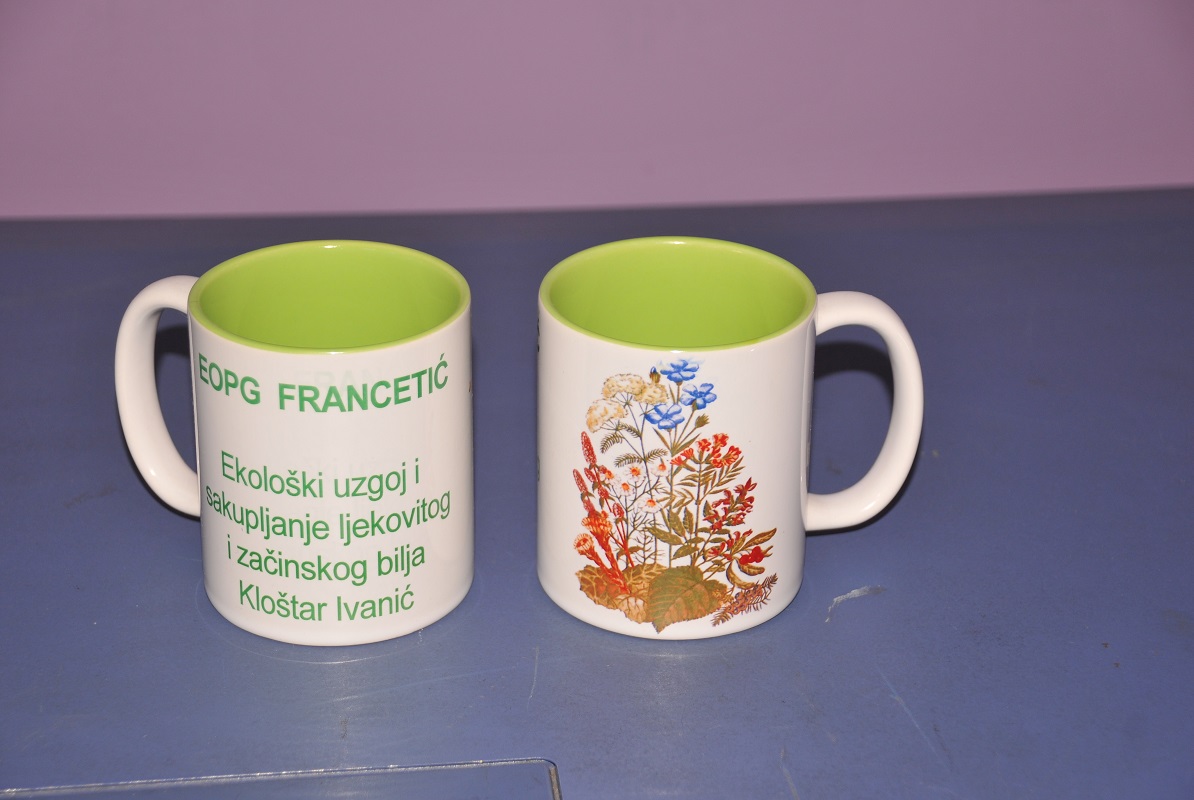 Na šalicu je moguće kombinirati i tekst uz sliku (“sretan rođendan, najboljoj mami, bratu od seke” i sl.), šalice mogu imati i ispunu u boji (s unutarnje strane šalice), koju odaberete iz dostupne palete (svjetlo i tamno zelena, svjetlo plava, narančasta, crna , bordo, roza, bijela).